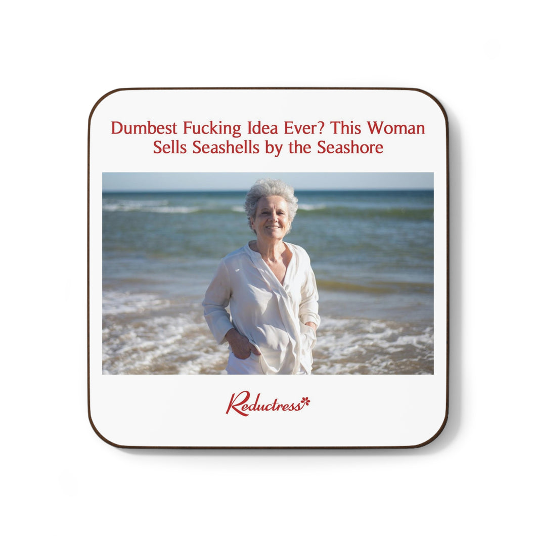 "Dumbest Fucking Idea Ever? This Woman Sells Seashells by the Seashore" Hardboard Back Coaster