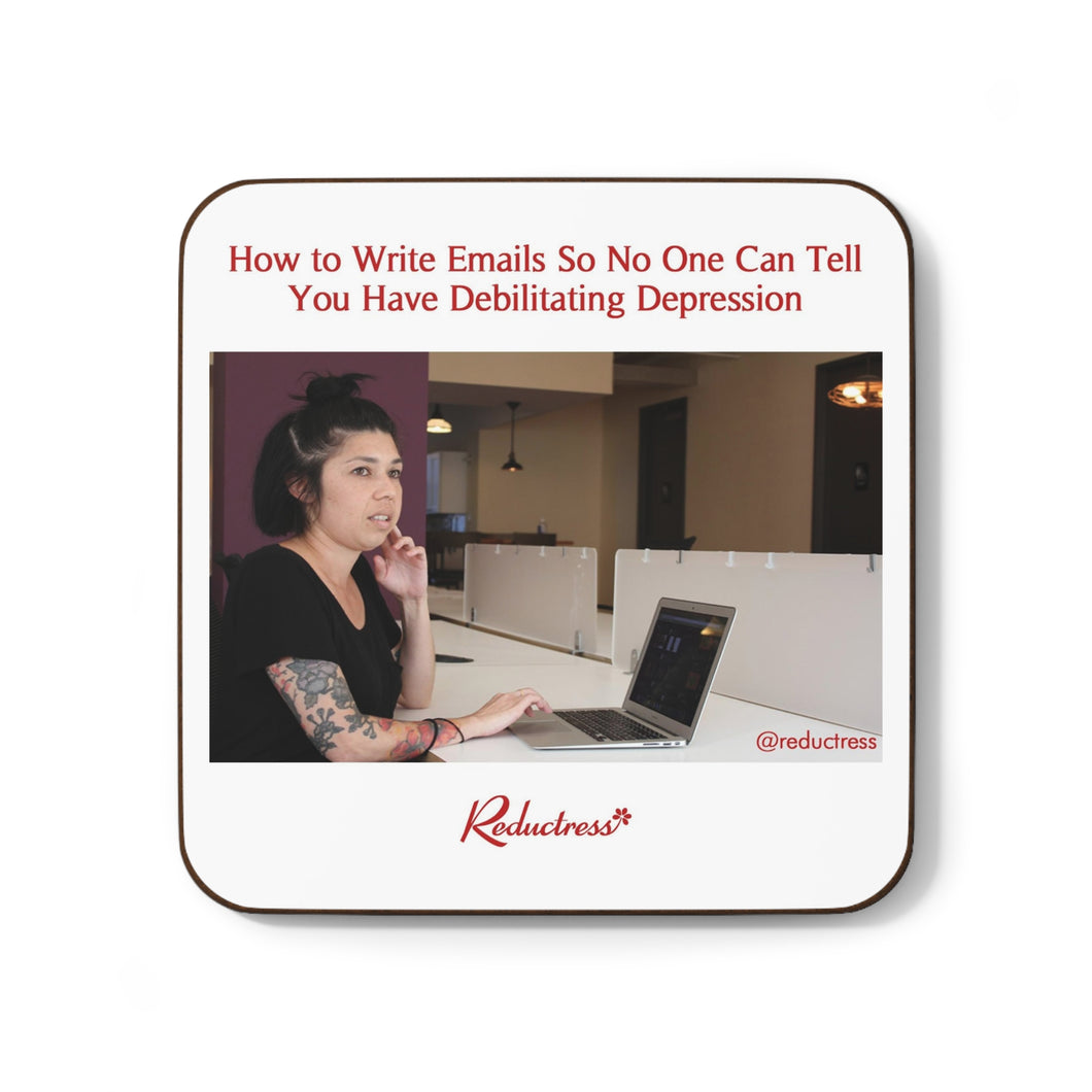 "How to Write Emails So No One Knows You Have Debilitating Depression" Hardboard Back Coaster