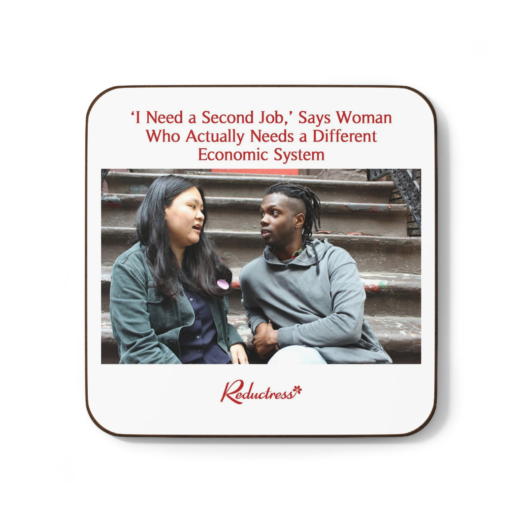 "'I Need a New Job,' Says Woman Who Needs a Different Economic System" Hardboard Back Coaster