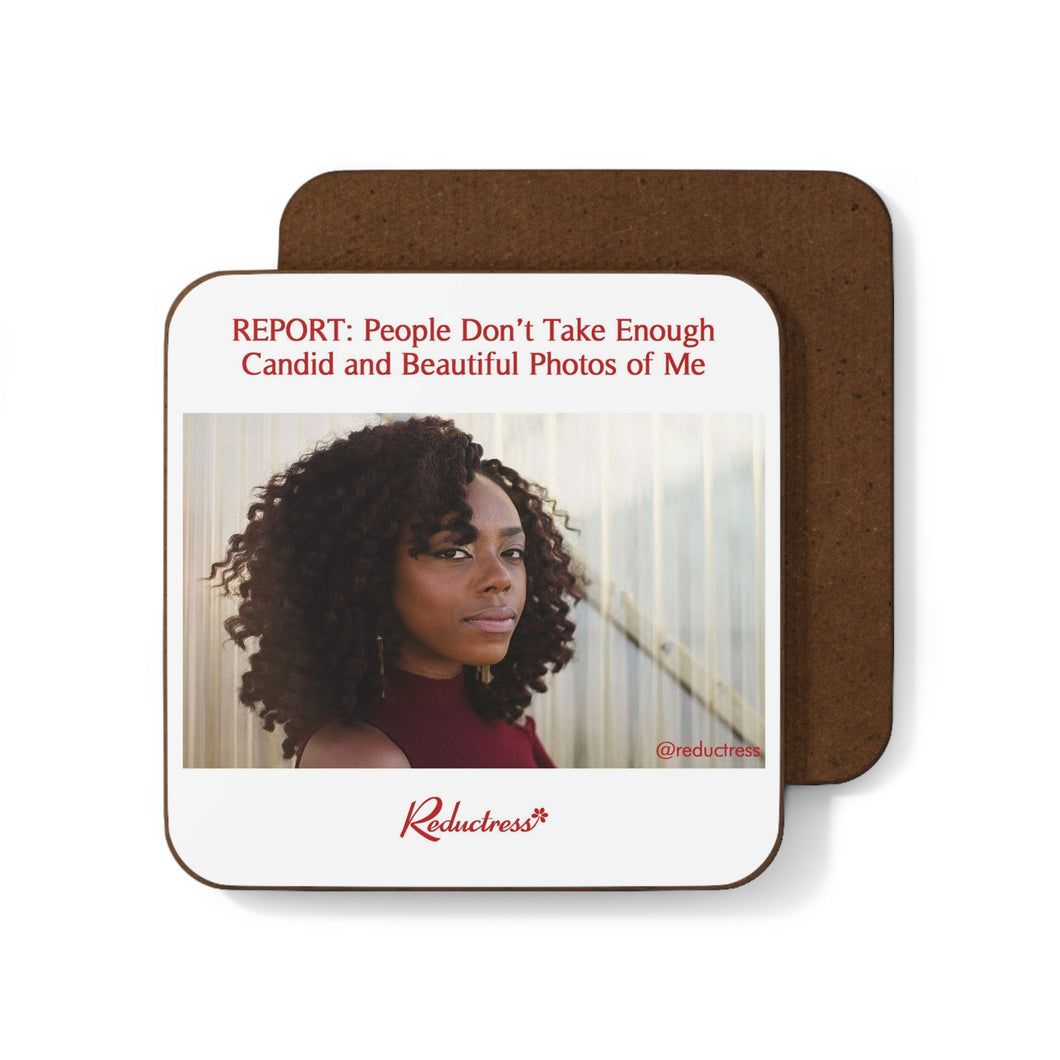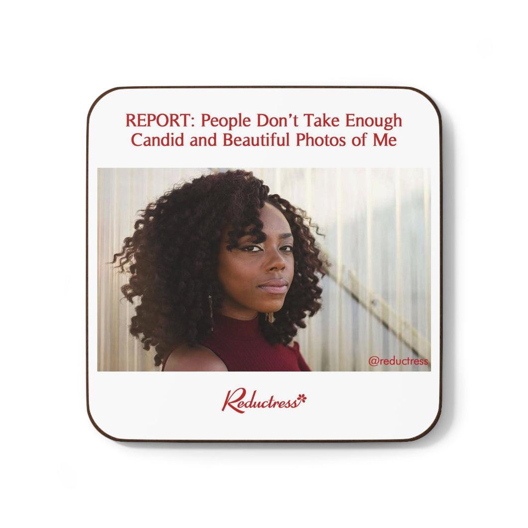 "REPORT: People Don’t Take Enough Candid and Beautiful Photos of Me" Hardboard Back Coaster