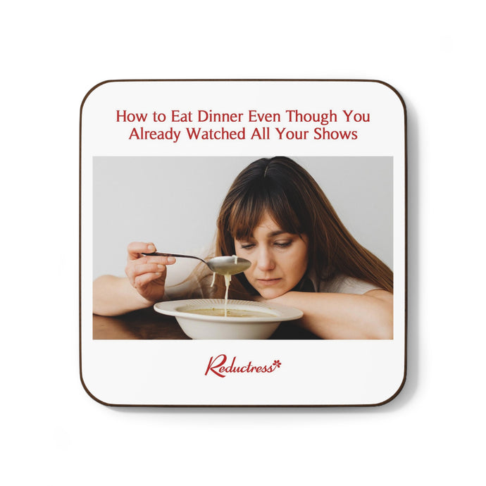"How to Eat Dinner Even Though You Already Watched All Your Shows" Hardboard Back Coaster