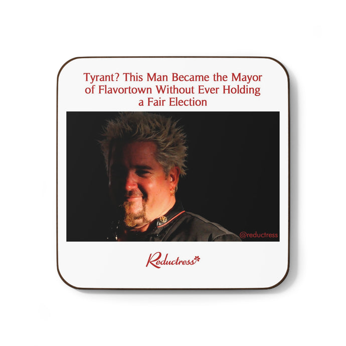"Tyrant? This Man Became The Mayor of Flavortown Without Ever Holding a Fair Election" Hardboard Back Coaster