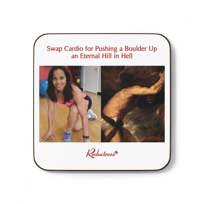"Swap Cardio For Pushing A Boulder Up An Eternal Hill in Hell" Hardboard Back Coaster