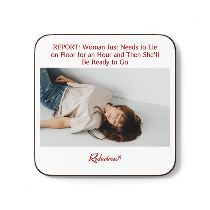 "REPORT: Woman Just Needs to Lie on Floor for an Hour and Then She'll Be Ready to Go" Hardboard Back Coaster