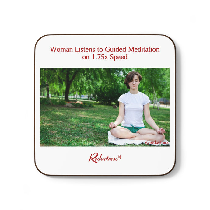"Woman Listens to Guided Meditation on 1.75x Speed" Hardboard Back Coaster
