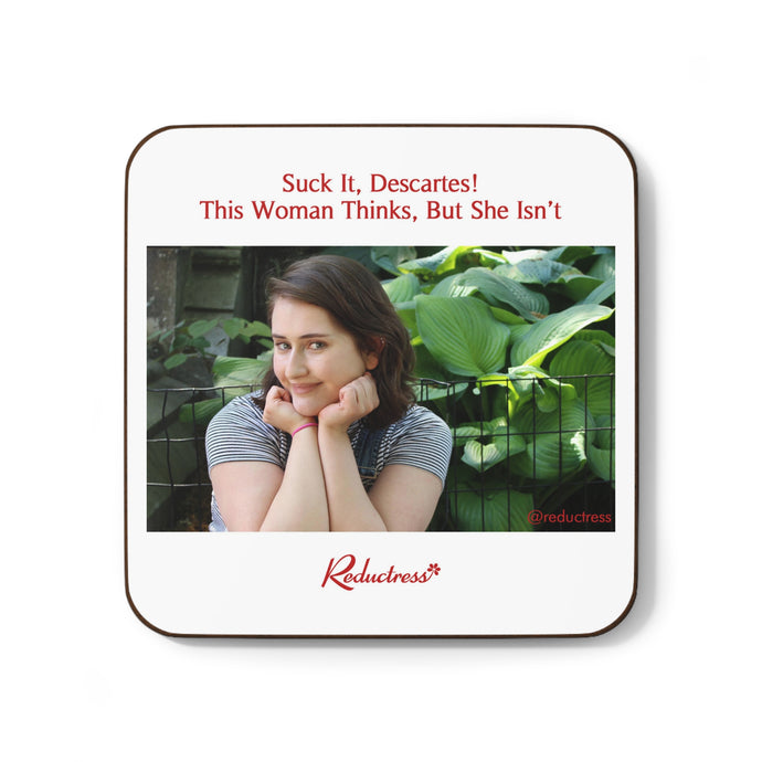 "Suck It, Descartes! This Woman Thinks, But She Isn't" Hardboard Back Coaster