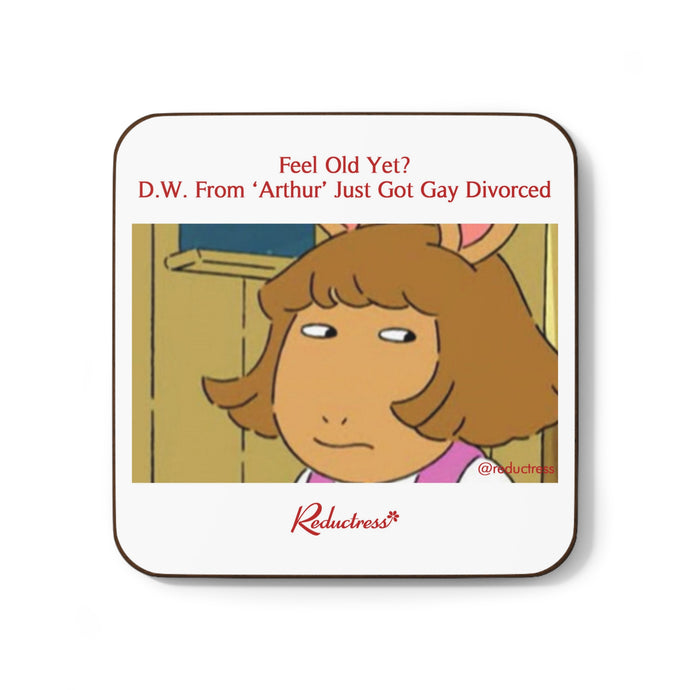 "Feel Old Yet? D.W. From Arthur Just Got Gay Divorced" Hardboard Back Coaster