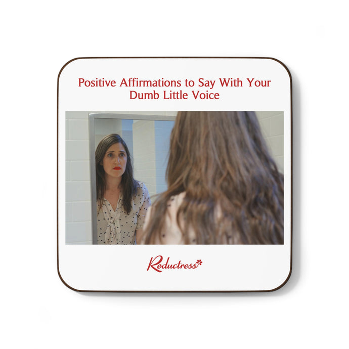 "Positive Affirmations to Say With Your Dumb Little Voice" Hardboard Back Coaster