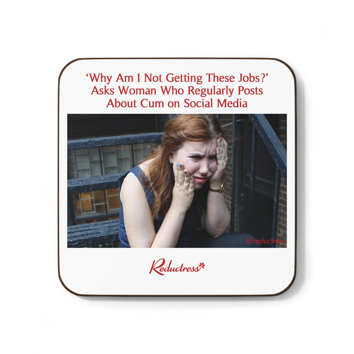 "‘Why Am I Not Getting These Jobs?’ Asks Woman Who Regularly Posts About Cum on Social Media" Hardboard Back Coaster