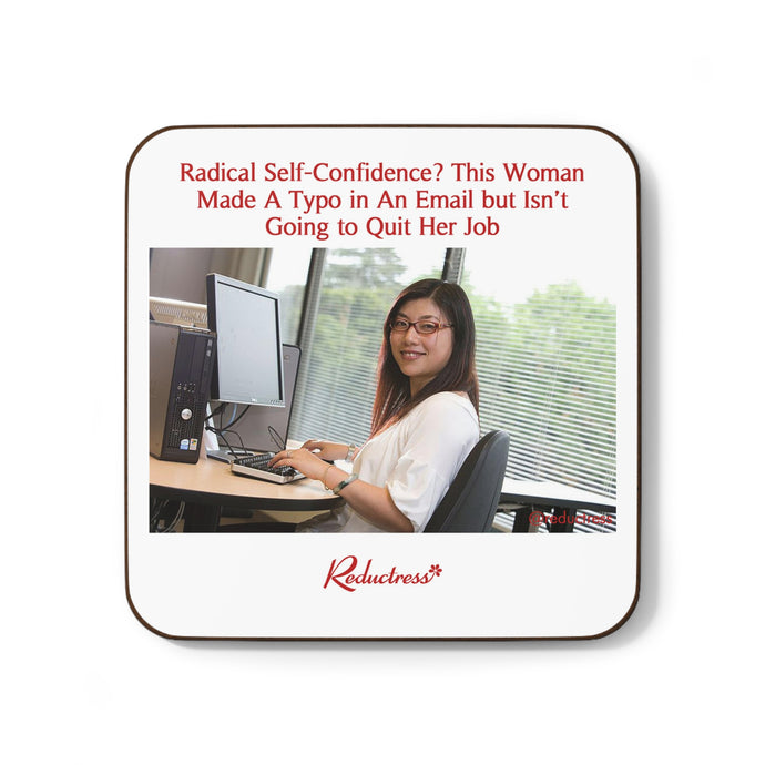 "Radical Self-Confidence? This Woman Made A Typo in An Email but Isn’t Going to Quit Her Job" Hardboard Back Coaster