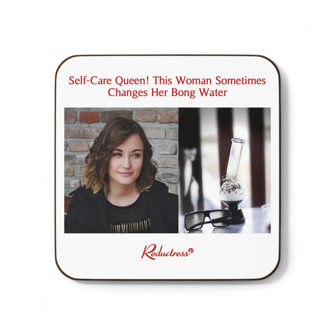 "Self-Care Queen! This Woman Sometimes Changes Her Bong Water" Hardboard Back Coaster