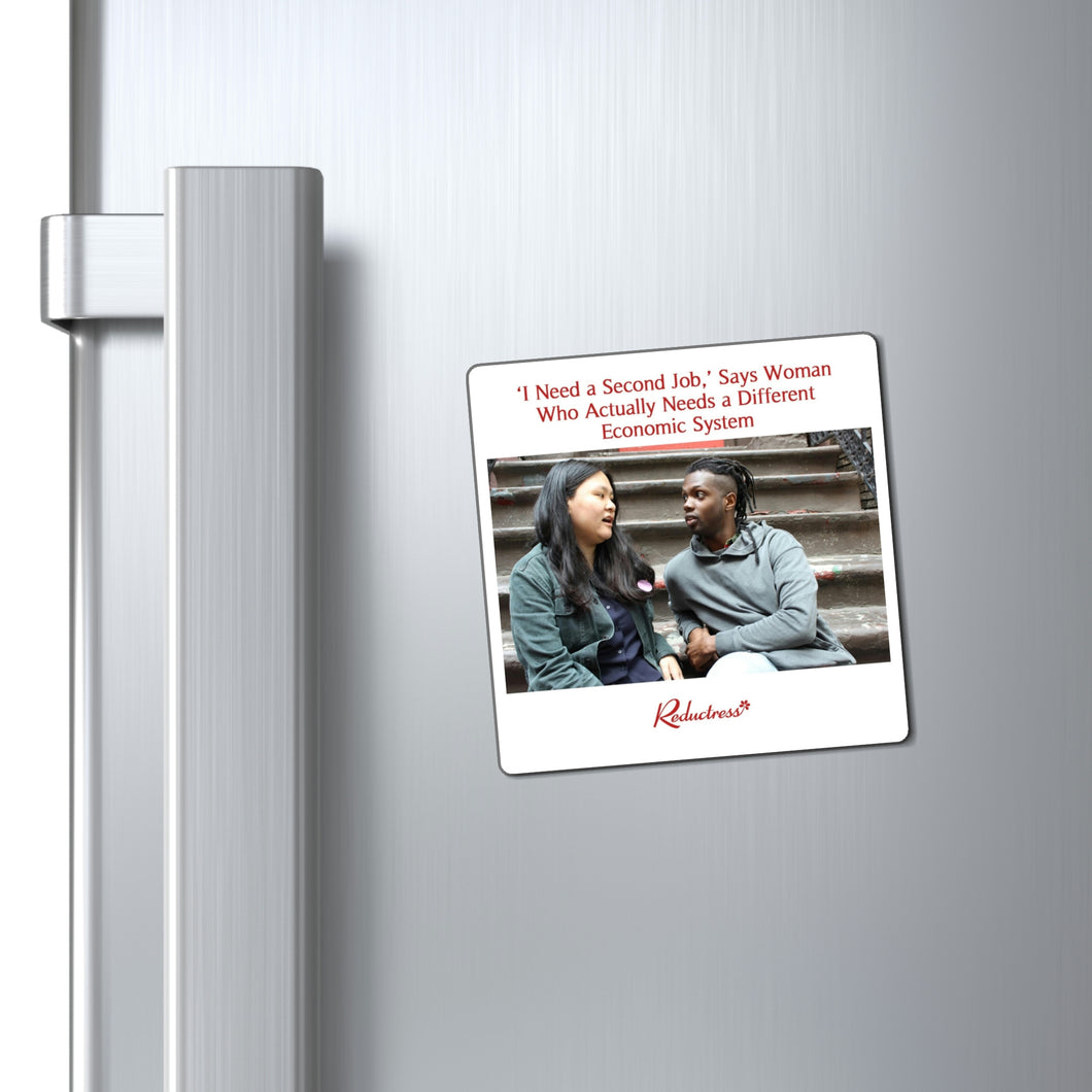 Are you a workaholic or just trying to afford insurance? These strong, fast holding magnets boldly broadcast your favorite Reductress headlines for all to see, get yours today!