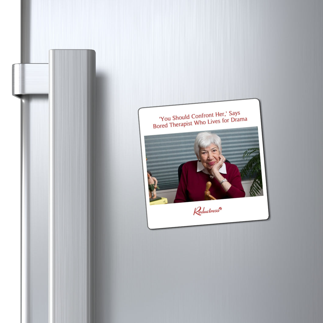 She's having SO much fun listening to all the tea! These strong, fast holding magnets boldly broadcast your favorite Reductress headlines for all to see, get yours today!