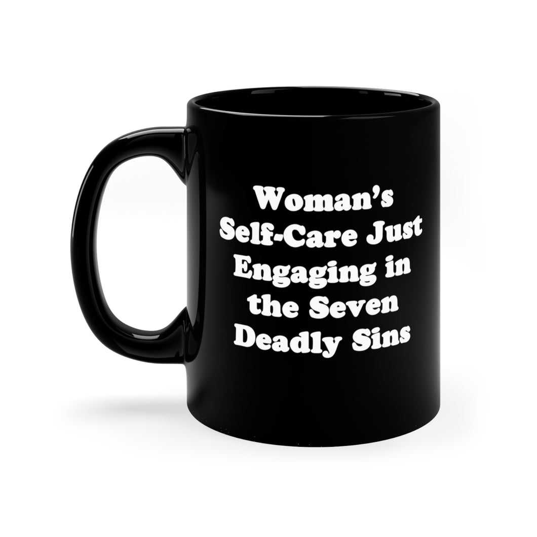 "Woman's Self-Care Just Engaging in the Seven Deadly Sins" Black Mug